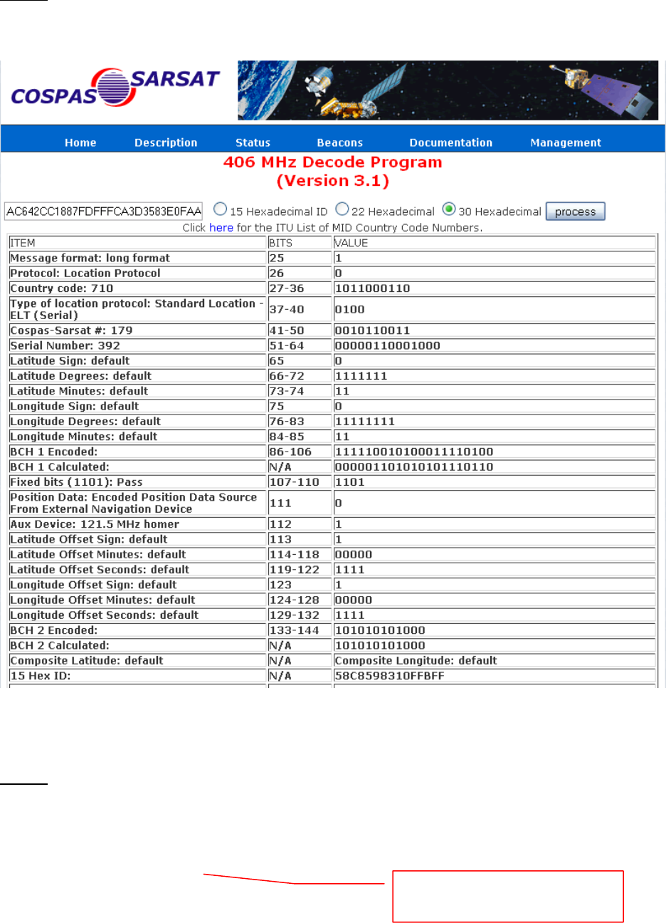Input the 30-digit hex code into the 406 MHz Decode Program provided. See below: