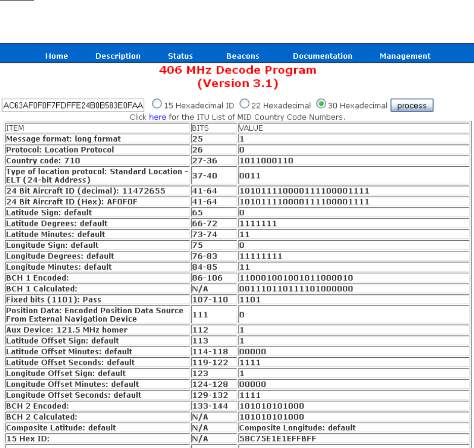 Input the 30-digit hex code into the 406 MHz Decode Program provided. See below: