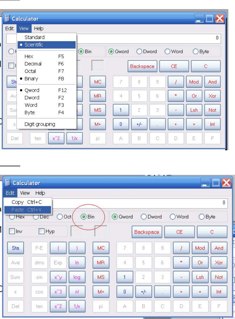 Step b: Paste the template to the calculator in Binary mode